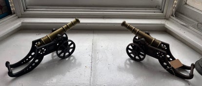 A Pair of Victorian Brass and Cast Iron Gun Cannons . Very heavy items